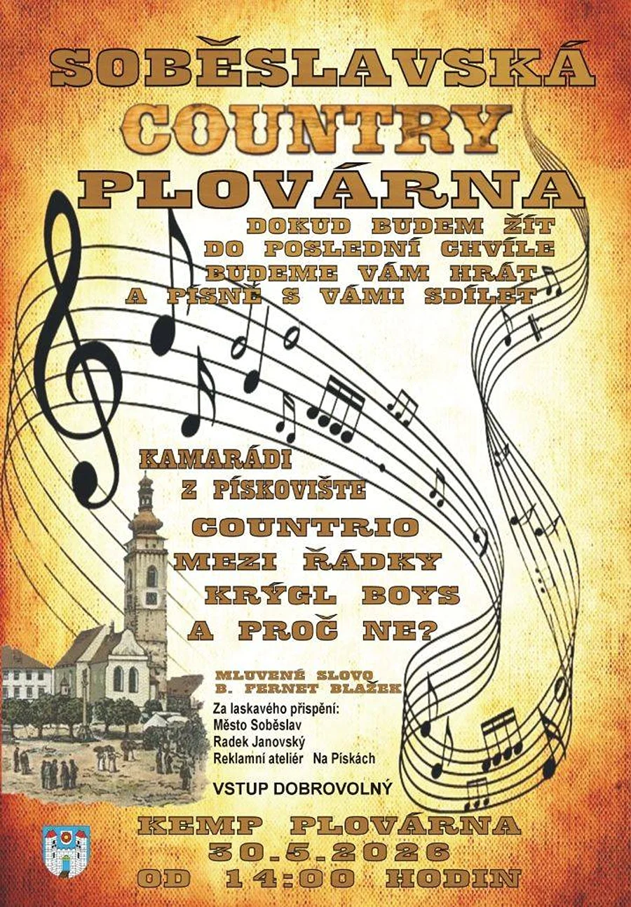 Country Plovárna+ Přidat do Google kalendáře+ iCal / Outlook export 00dny 00hodiny 00minuty 00vteřiny Datum30. května 2026 Čas All Day UmístěníKemp Plovárna SoběslavNa Petříně, SoběslavSdílet tuto událost